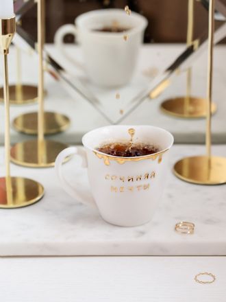КРУЖКА "ЗОЛОТЫЕ КАПЛИ" С НАДПИСЬЮ. ЦВЕТ БЕЛЫЙ