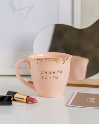 КРУЖКА "ЗОЛОТЫЕ КАПЛИ" С НАДПИСЬЮ. ЦВЕТ РОЗОВЫЙ