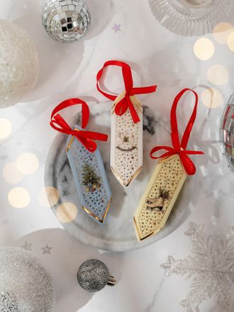 Набор елочных игрушек ручной работы в подарочной упаковке.